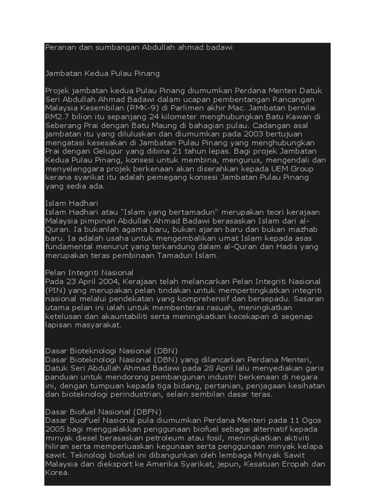 Peranan Dan Sumbangan Abdullah Ahmad Badawi PDF