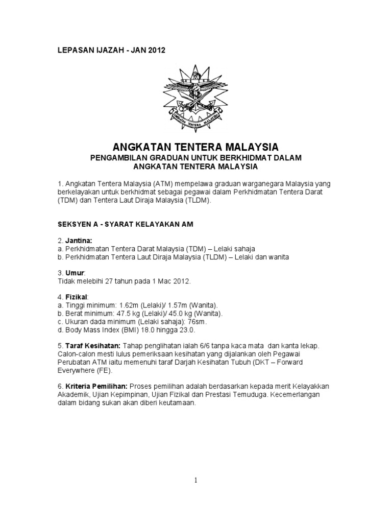 Tentera Darat Malaysia (TDM) - 22 Januari 2017 - JAWATAN KOSONG 2021