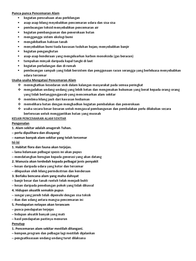 Pencemaran Alam Isi Penting PDF